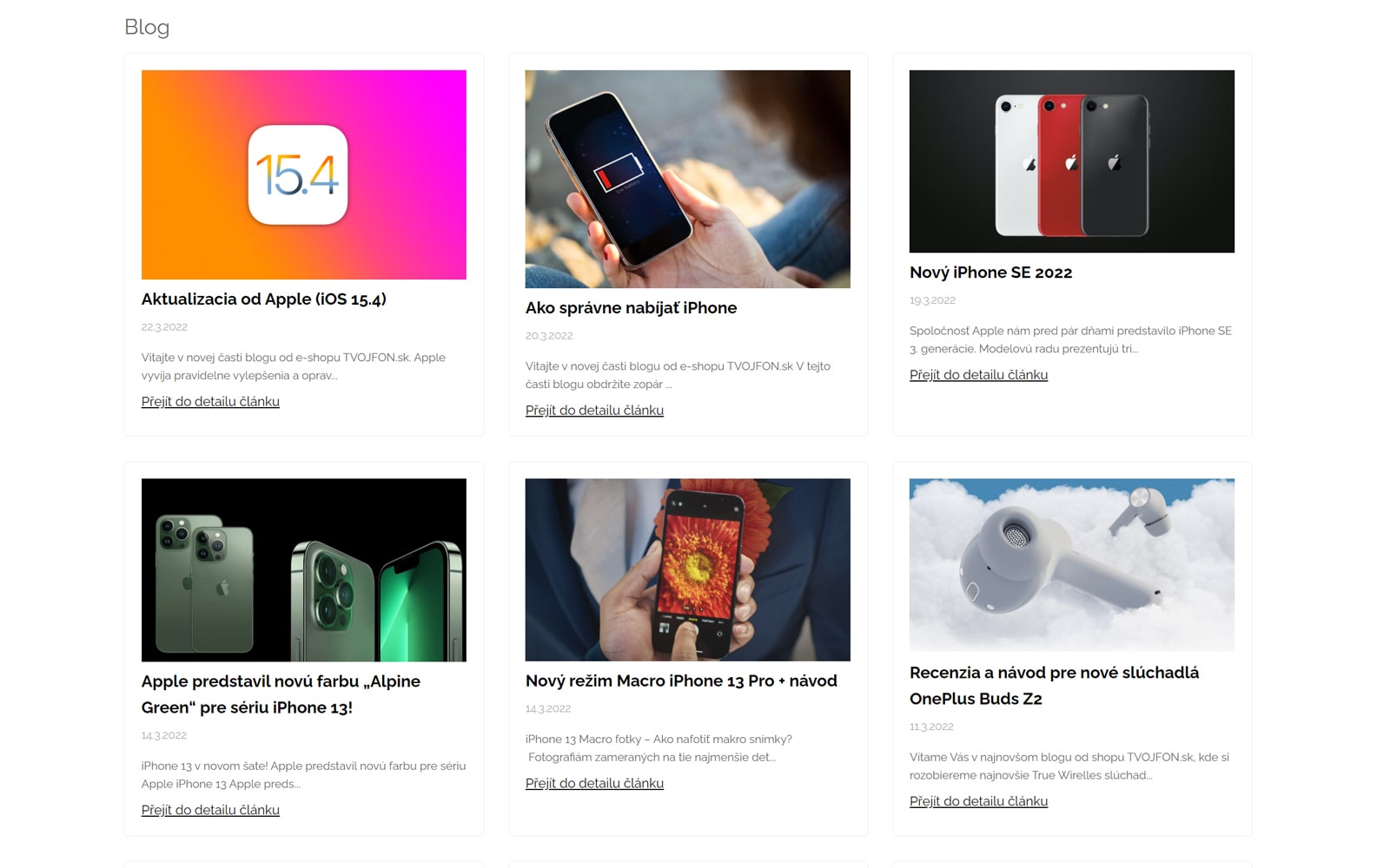 Při vytváření článků, pro dosažení co nejlepšího vzhledu Vám doporučujeme nahrávat náhledové obrázky vždy ve stejném rozměru. Stejná velikost všech obrázků zajístí hezké stejnoměrné zobrazení všech článků, což ve finále vytváří na zákazníky ten správný dobrý dojem - toto pravidlo platí nejen u článků, ale také u výpisu produktů. Proto toto pravidlo dodržujte napříč celým eshopem, ať už se jedná o cokoli... U náhledů článků dále doporučujeme vypisovat zkrácený popis v rozsahu 150-300 znaků, který je ideální náhledovou delkou. (Počet znaků je pouze orientační - nastavte si v Shoptet administraci dle potřeb svého eshopu a způsobu zobrazení naší grafické úpravy.)