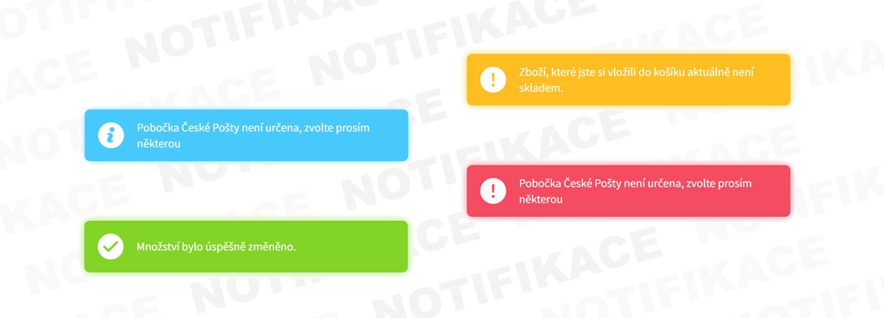 Jistě každý z Vás zná oficiální Shoptet doplněk s názvem "Grafická úprava notifikací", který upravuje (jak už název napovídá) vzhled jednotlivých notifikačních oznámení, které se zobrazují například po přidání produktu do košíku nebo při nevyplnění pobočky v nákupním košíku. Základní zobrazení není úplně hezké a zároveň překrývá důležité části jako je např. hlavní menu a nákupní košík. Lišta je zobrazena poměrně dlouho a pro uživatele je tato situace poměrně nepříjemná... Takže dříve nebo později většina z Vás sáhne právě po doplňku "Grafická úprava notifikací". A právě proto jsme se rozhodli pro všechny členy našeho portálu tuto úpravu, v našem podání, připravit ke stažení ZDARMA. Díky tomu Vám také můžeme ukázat celkovou finanční výhodnost členství našeho portálu, kde stačí zaplatit jednorázový registrační poplatek a získáte doživotní přístup k desítkám různých kodérských úprav ZDARMA, které jsou pravidelně udržovány a kromě toho stále vyvíjíme nové a nové úpravy!