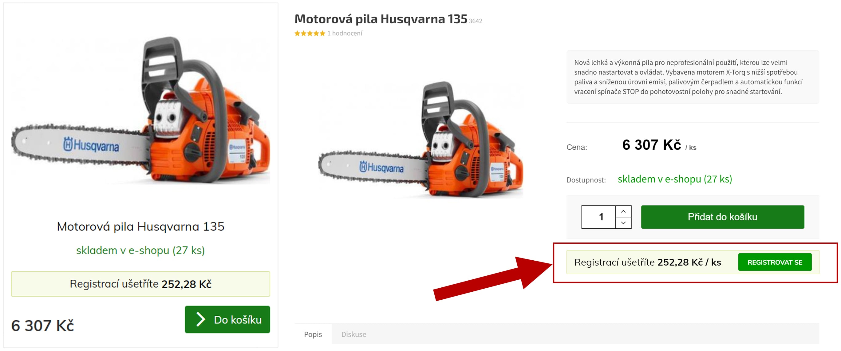 Nabízíte registrovaným uživatelům slevu na Vaše produkty? Ano? A máte tuto informaci viditelně uvedenou na svém eshopu?! Sleva pro registrované zákazníky je skvělou motivaci jak přimět nové uživatele, aby se zaregistrovali. Motivujte je k registraci a sbírejte tak nové kontakty! Díky této úpravě můžete jednoduše zákazníkům zobrazit informaci, jakou částku mohou ušetřit po registraci na Vašem eshopu.