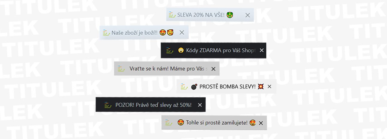 Tento měnící se efekt není nijak agresivní, ani rušivý - jedná se opravdu o drobný, ale přesto dostatečně viditelný efekt, který si získá zpět pozornost zákazníka, který už je možná právě na odchodu a není nakliknutý na záložce Vašeho eshopu v prohlížeči. Jednoduše zadejte text, za který chcete měnit původní titulek a aktivujte si svou úpravu.